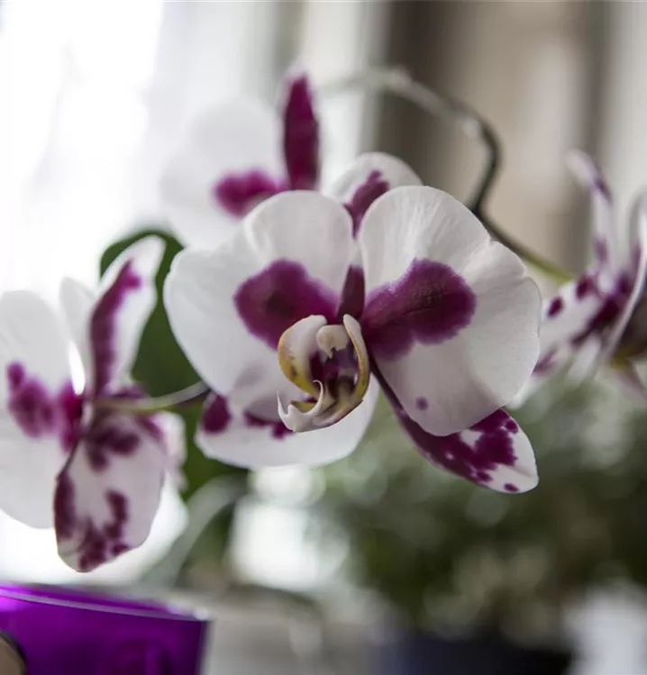 Die Schmetterlingsorchidee (Phalaenopsis) ist eine schöne, in verschiedenen Farben blühende Orchidee. Ihre lippenförmigen Blüten sind sehr dekorativ und erscheinen in Rispen von Januar bis Dezember. Für das optimale Wachstum sorgen ein heller Standort sowie ein spezielles Orchideen-Substrat.