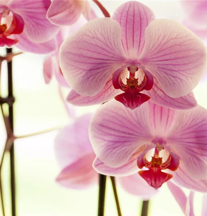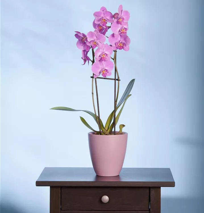 Die Schmetterlingsorchidee (Phalaenopsis) ist eine schöne, in verschiedenen Farben blühende Orchidee. Ihre lippenförmigen Blüten sind sehr dekorativ und erscheinen in Rispen von Januar bis Dezember. Für das optimale Wachstum sorgen ein heller Standort sowie ein spezielles Orchideen-Substrat.